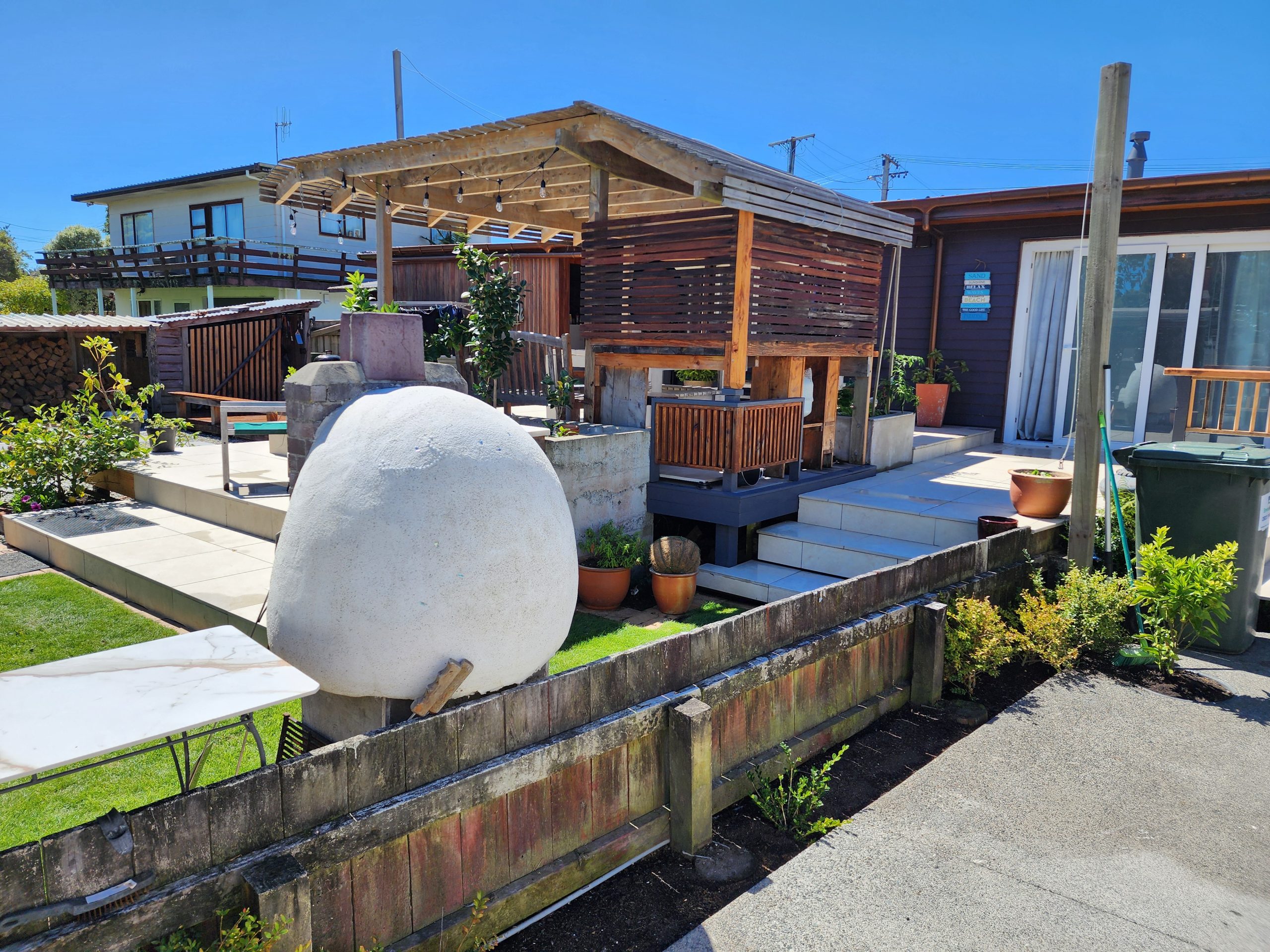 Family home with two double bedrooms, sunroom and large outdoor living areas including a covered exterior ‘snug’ with open fire and pizza oven. Situated in Otaihanga just a few 100meters from the Waikanae River and a boardwalk to the beach.